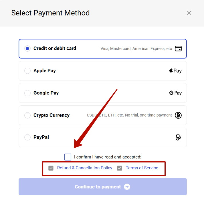 - You’ll be redirected to the fill-in information page, where you’ll have to enter your payment data.