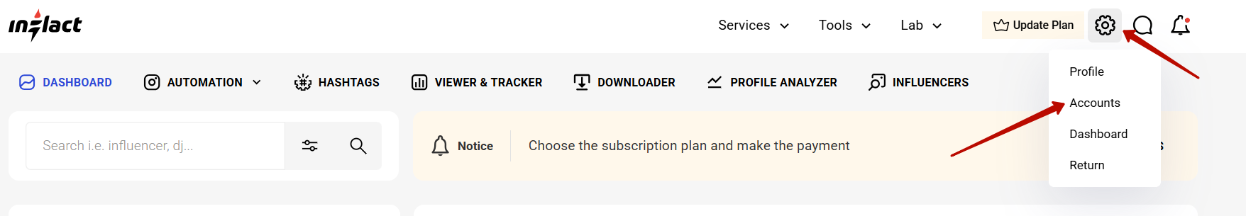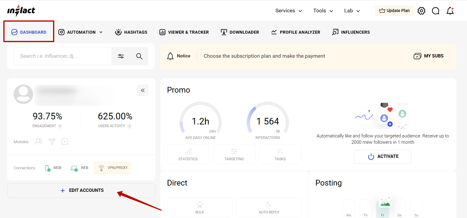 For stable promotion, you need to activate a VPN before starting to use Instagram on your device. Instagram and Inflact accounts should have the same source data to log in.