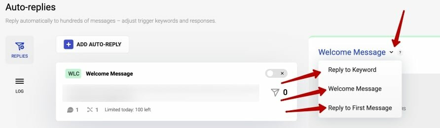 - welcome message (Each new follower will receive the message you specified immediately after following you.)