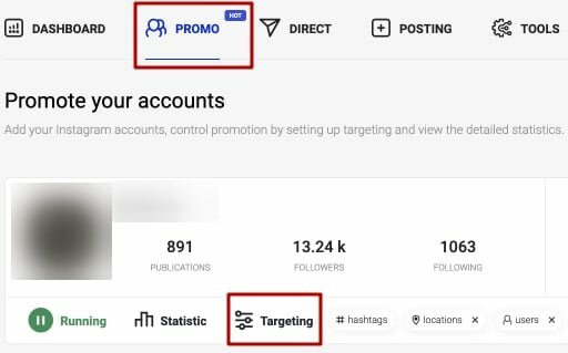 - Apply Promo mode to attract converting clients. Use the usernames you’ve found for the Promo targeting. Also, you will need to use proper hashtags.