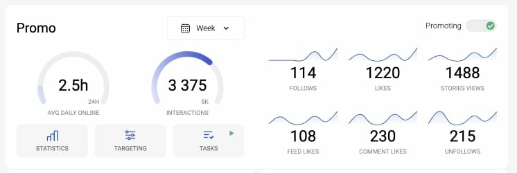 - Promo statistics. You can monitor the success of your Instagram growth on the Promo dashboard. View how many new followers you get, and what usernames and hashtags are more lucrative for building your audience.